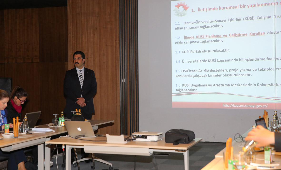 Türkiye Kamu-Üniversite-Sanayi İşbirliği Planlama ve Geliştirme Kurulu Kayseri İl Temsilcisi Doç. Dr. Mustafa Türkmen ise 2016 yılı faaliyetlerini, alınan kararları ve yapılacak uygulamaları anlattı.