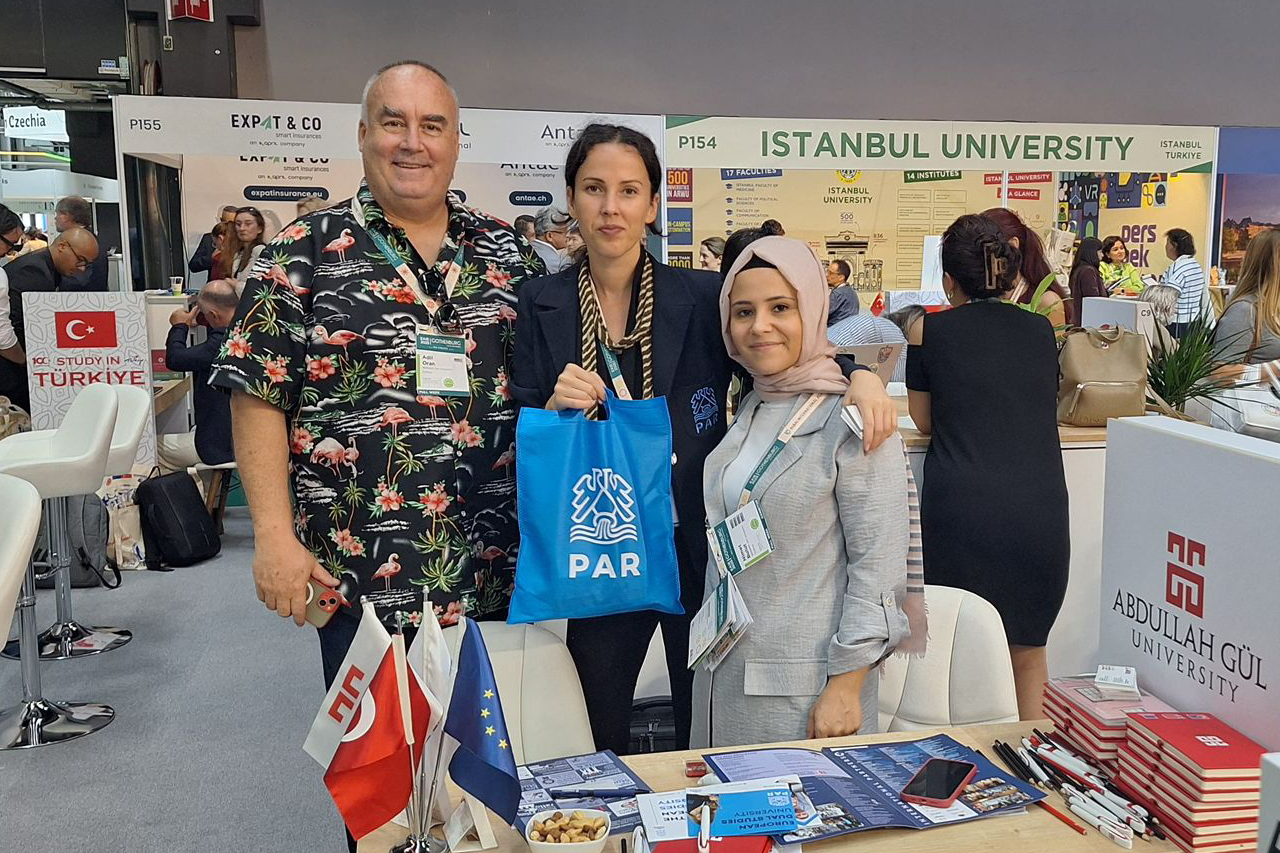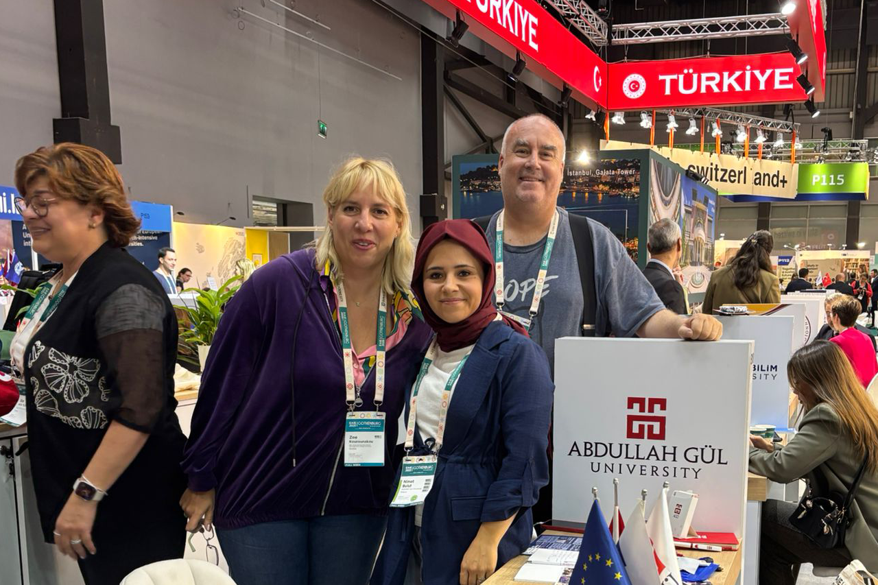 AGÜ’yü fuarda, İşletme Bölümü Öğretim Üyesi Doç. Dr. Adil Oran ve Uluslararası Ofis Koordinatörü Nimet Bulut temsil etti. Üniversite heyeti, fuar kapsamında 21 ülkeden 38 farklı kurum ile görüşmeler gerçekleştirerek, Erasmus+, akademik iş birlikleri ve çift diploma programları üzerine önemli temaslarda bulundu.