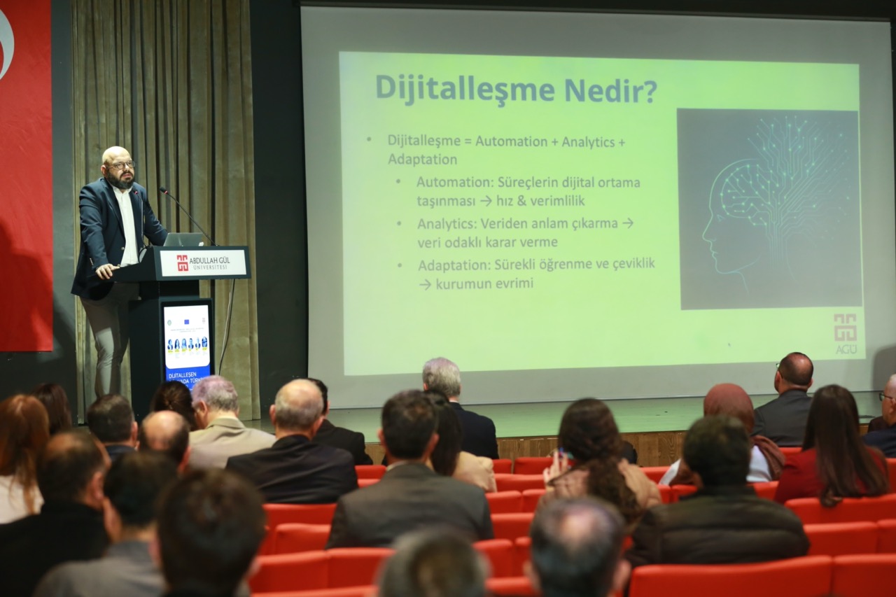 Abdullah Gül Üniversitesi’nde (AGÜ) Ankara Üniversitesi iş birliğiyle “Dijitalleşen Dünyada Türkiye: Mevcut Durum ve Riskler” temalı konferans düzenlendi. Konferansta Dijitalleşen Dünyada Türkiye’nin rolü tartışıldı.