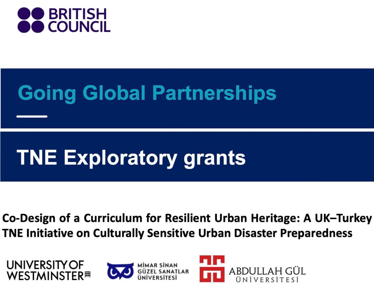 British Council tarafından desteklenen 2025–2026 Ulusötesi Eğitim Araştırma Hibe Programı çerçevesinde yürütülen proje, “Dirençli Kentsel Miras için Müfredatın Ortak Tasarımı: Kültürel Duyarlılığa Dayalı Kentsel Afet Hazırlığı Konusunda Bir Birleşik Krallık-Türkiye TNE Girişimi” başlığını taşıyor.